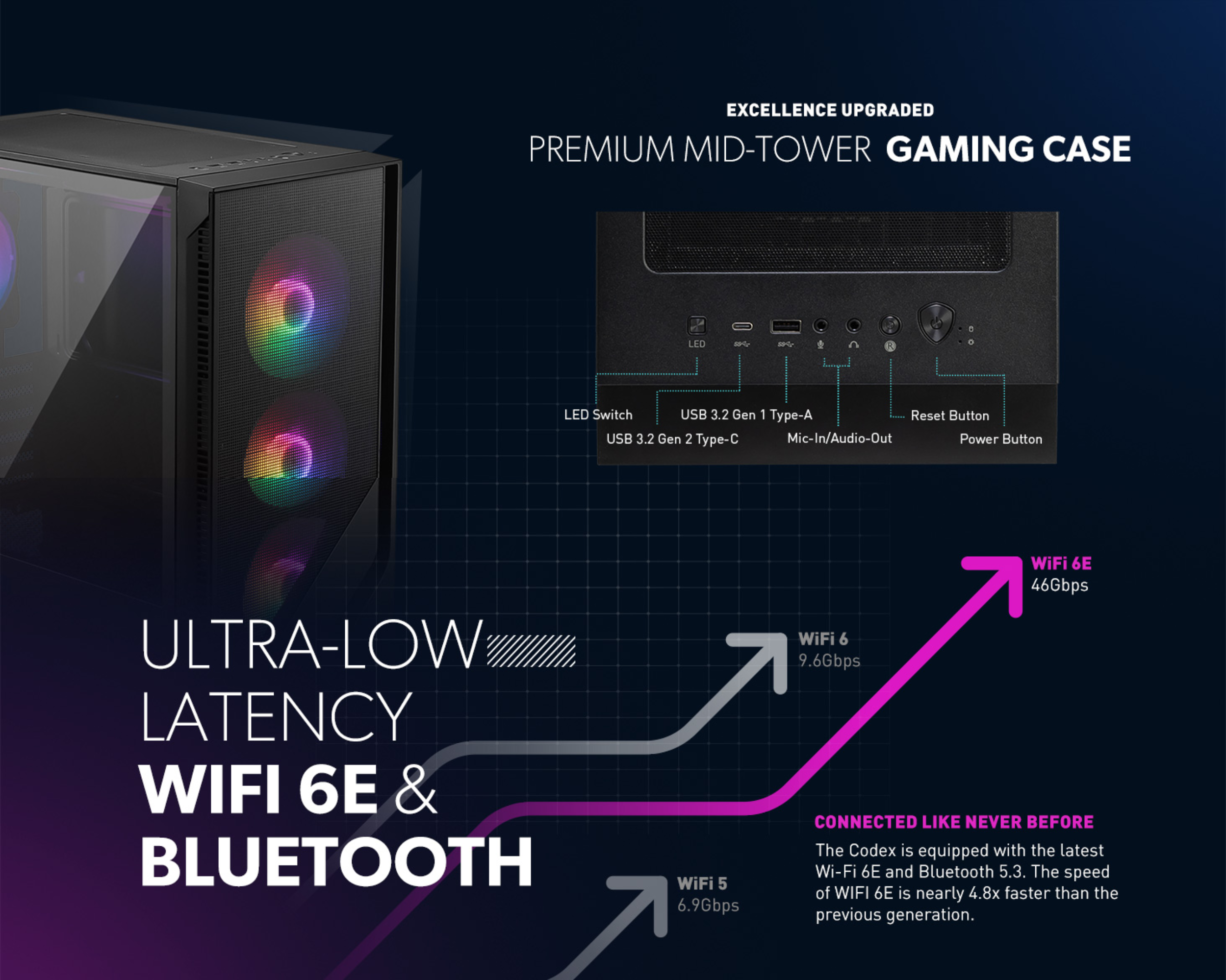 - Wi-Fi 6E | GbE LAN | Bluetooth 5.3