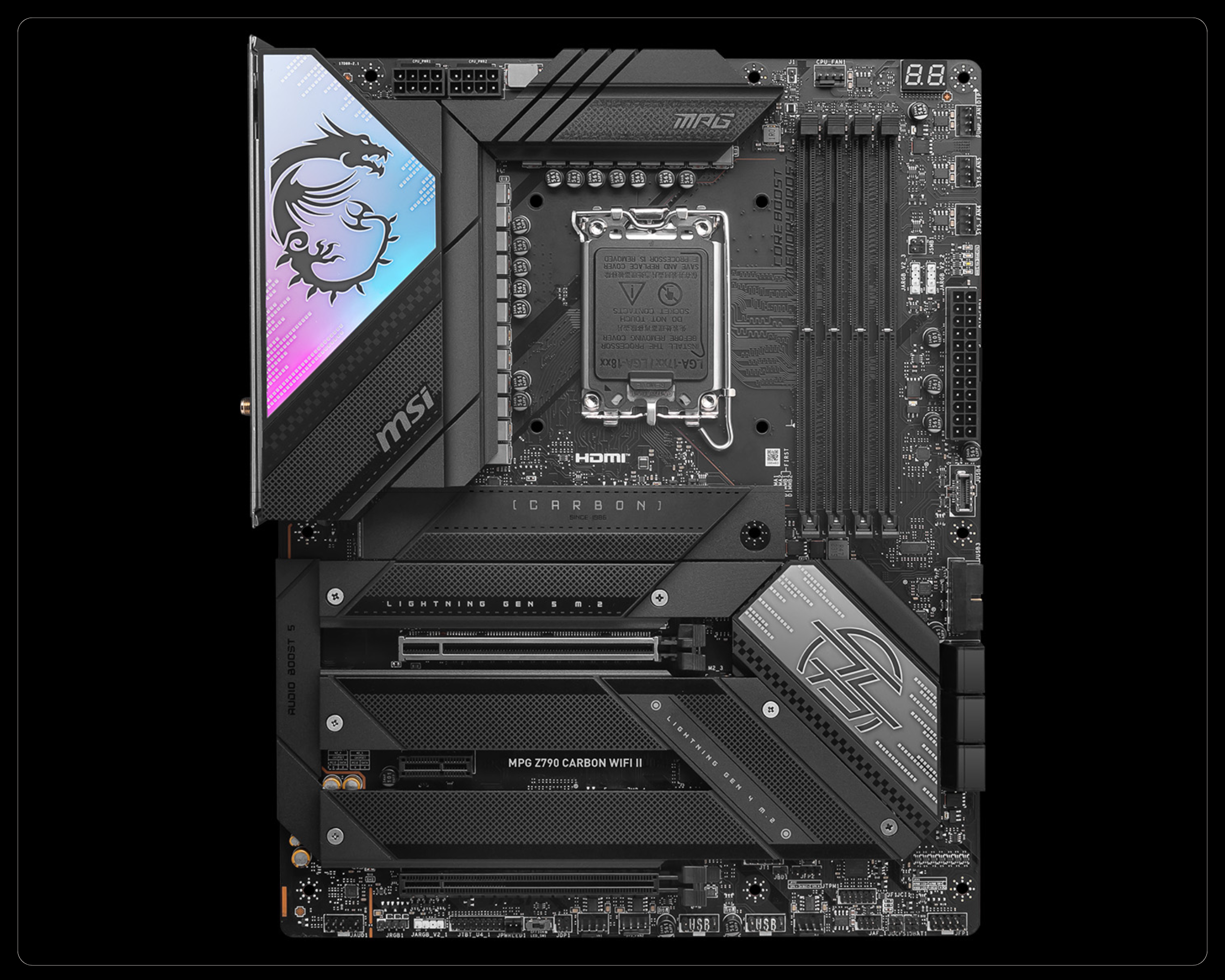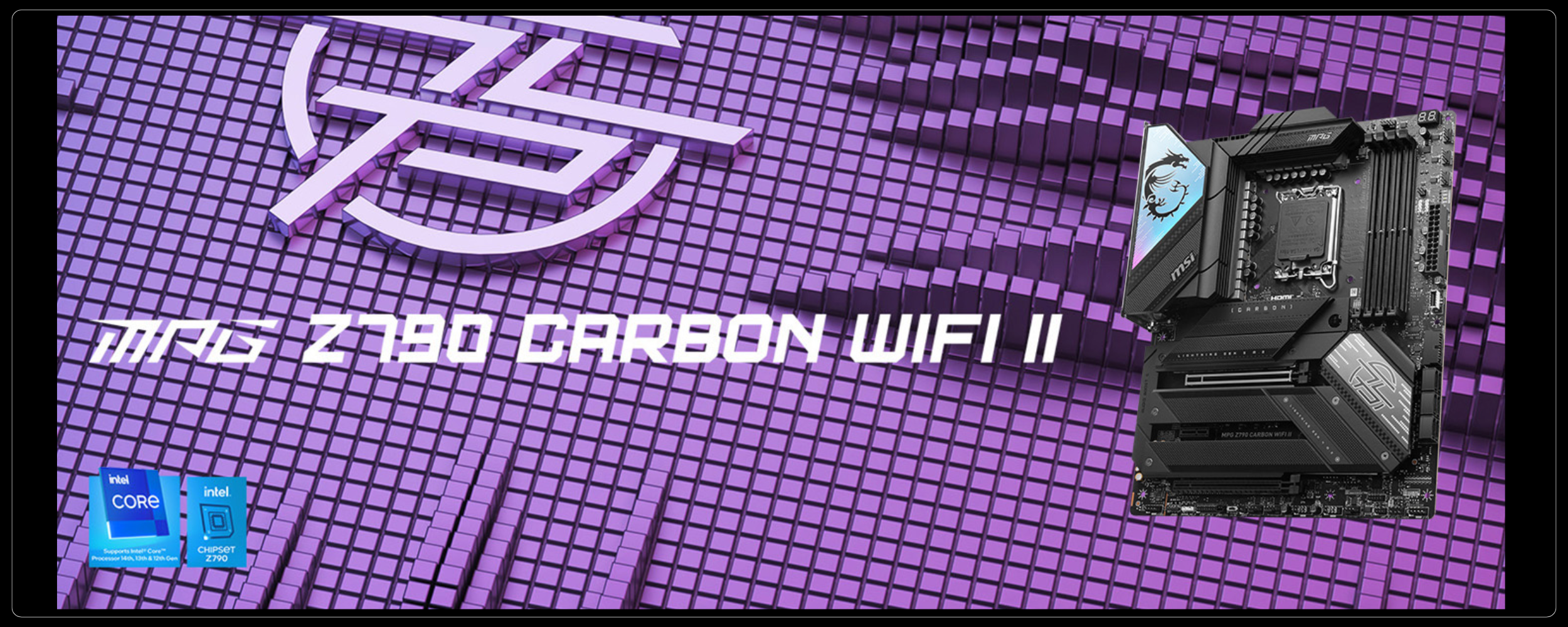 Featuring expansive connectivity, the MSI MPG Z790 CARBON MAX WIFI II LGA 1700 ATX Motherboard takes your gaming and content-creation experiences to new levels. Supporting Intel desktop processors with the LGA 1700 socket, gamers, professionals, and enthusiasts can outfit this motherboard to smoothly handle demanding applications and video editing workloads. Designed to help simplify builds, MSI's EZ technology makes it easy to install one M.2 PCIe 5.0 and four PCIe 4.0 SSDs to store your games library, applications, and important files. There are also six SATA III connectors available. The four DDR5 DIMM slots support up to 256GB, reaching up to 7800 MT/s overclocked speeds. With one PCIe 5.0 x16 slot, one PCIe 4.0 x16 (x4 mode) slot, and one PCIe 3.0 x1 slot, you can install powerful graphics cards and other compatible expansions. The rear panel features a USB-C port that can transfer up to 20 Gb/s with compatible devices. There is also one USB-C and six USB-A 3.2 Gen 2 ports for 10 Gb/s compatible devices alongside four 5 Gb/s USB-A 3.2 Gen 1 ports. An internal header allows you to connect a front panel 20 Gb/s USB-C port. Additionally, installing the included MSI USB4 PD100W expansion card provides two 40 Gb/s compatible USB4 ports and two DisplayPort 1.4 video inputs. Built-in Wi-Fi 7 (802.11be) support and a 5 Gb/s Ethernet port provide you with connections to compatible network devices for smooth 8K video streaming and low-latency online games. Windows 10 or 11 64-bit is required to take advantage of all the motherboard's features. Performance