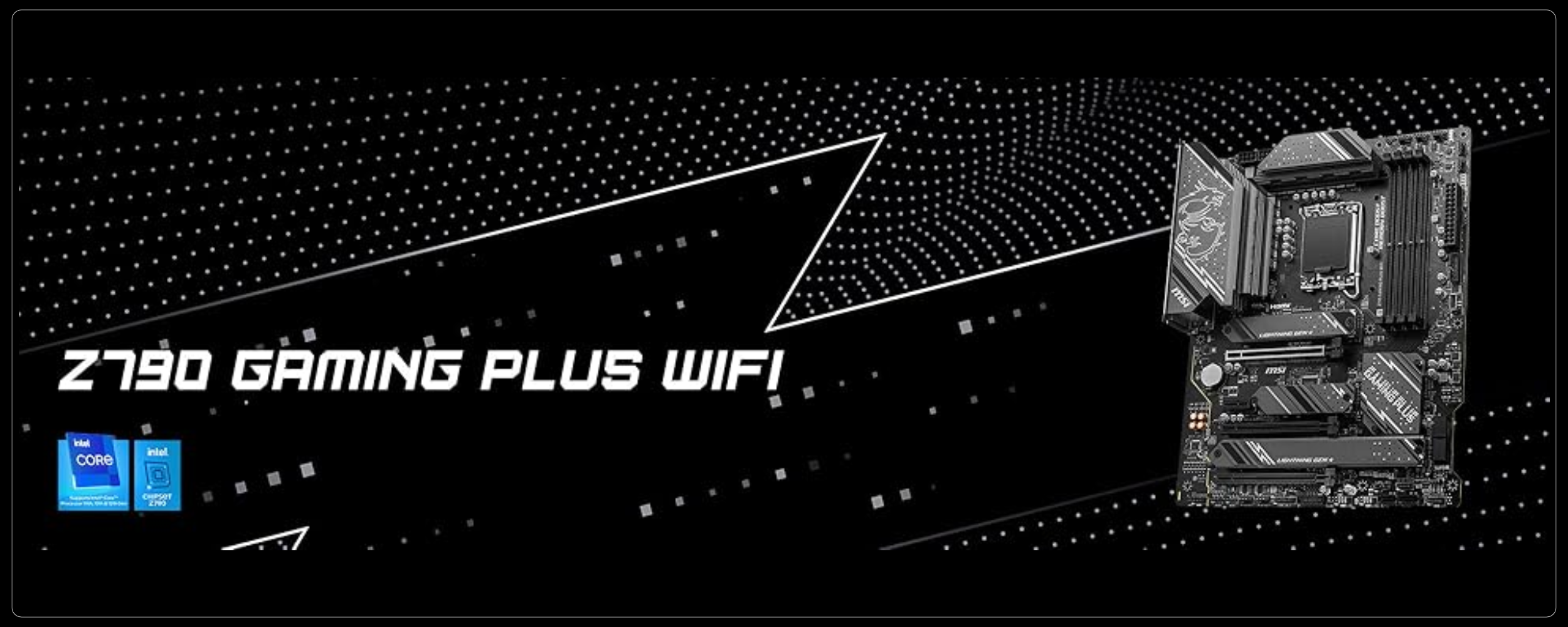 MSI Z790 GAMING PLUS WiFi Overview Set the foundation of your next PC build with the robust MSI Z790 GAMING PLUS WIFI ATX LGA 1700 Motherboard. Designed to leverage the power of Intel CPUs, the GAMING PLUS sports a layout designed to give gaming enthusiasts essential connectivity options ideal for starter builds. Intel's LGA 1700 socket rests at the heart of the GAMING PLUS, allowing you to install a variety of 12th, 13th, and 14th Gen processors to match your needs. Four DDR5 RAM slots allow you to install up to 192GB of memory to enhance multitasking and render speeds. Six SATA III and four M.2 PCIe SSD interfaces can support a wide range of storage drives that allow quicker data transfer speeds. Connect an array of graphics and utility cards with PCIe 5.0 x16, 3.0 x1, 4.0 x16 (in x4 mode), and 3.0 x16 (in x1 mode) expansion slots. Between back-panel connections and internal headers, you get several USB 2.0, 3.2 Gen 1, and 3.2 Gen 2 ports, designed for devices such as keyboards and mice as well as resource-demanding devices like audio interfaces. A single back panel USB-C 3.2 Gen 2x2 port gives you enhanced throughput with greater data transfer speeds suitable for storage arrays. You also get Bluetooth 5.3 connectivity for wireless peripheral support, giving you a true cable-free experience. Connect to your network with a wired or wireless connection with a built-in 2.5 Gigabit Ethernet LAN port and Wi-Fi 6E (802.11ax) options, respectively.