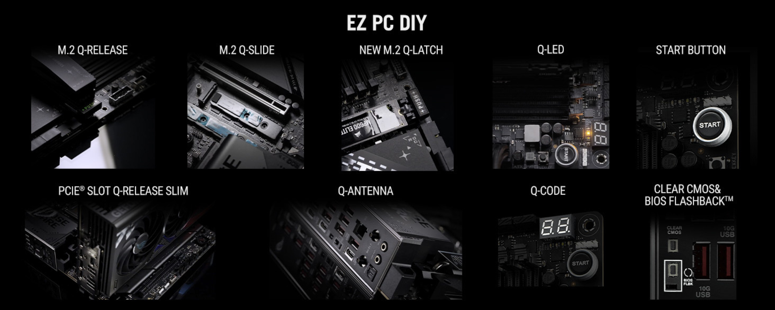 ASUS M.2 Q-Release, Q-Slide, and Q-Latch technologies allow you to quickly install or remove M.2 SSDs without the need for tools or screws.PCIe Slot Q-Release Slim