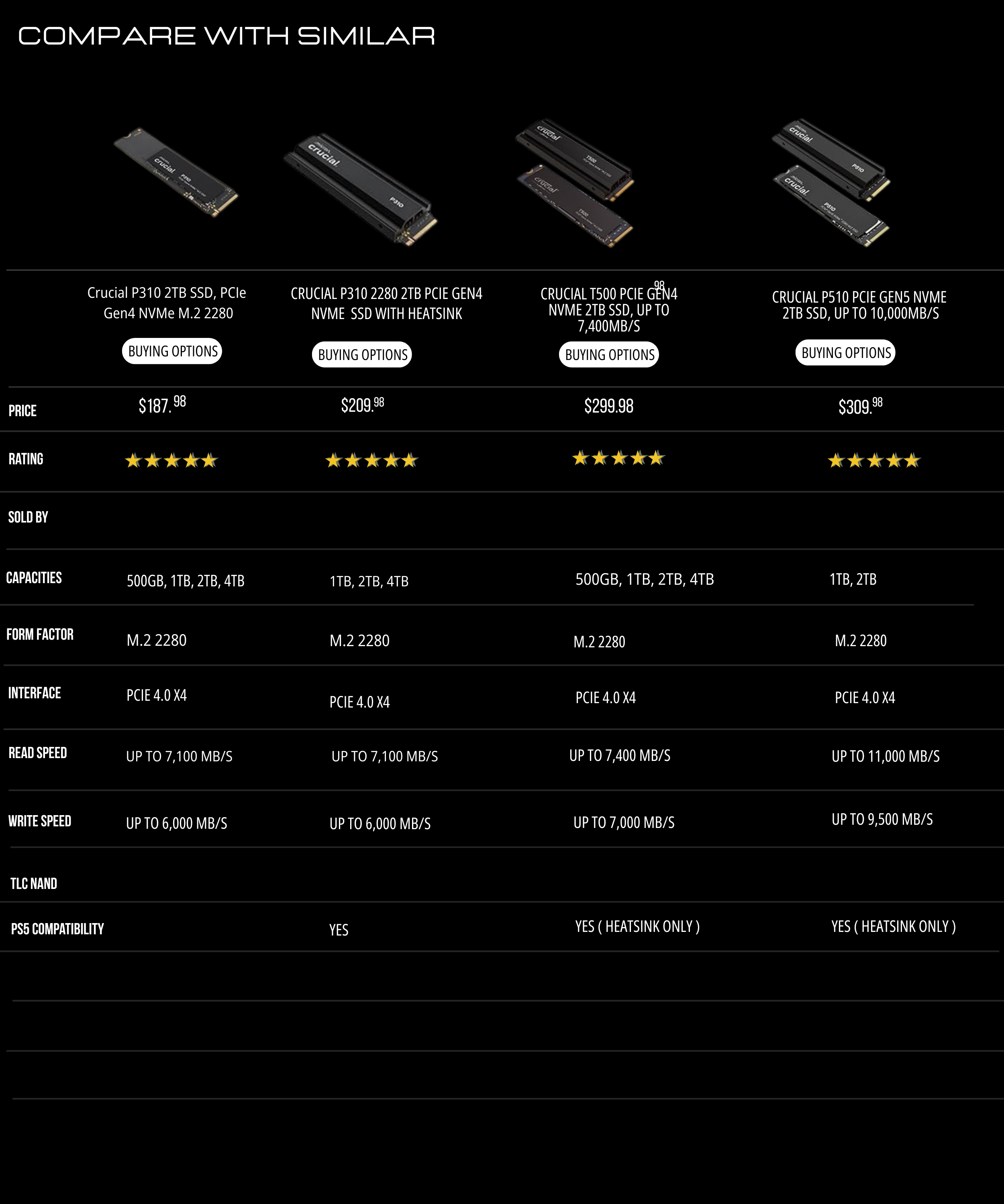 A prime choice for professional gaming upgrades Performance enhanced by fourfold, ready to start a game anytime TB-level large capacity for worry-free gaming storage Exceptional performance and durability Optimized operational performance with reliability and improved lifespan Intelligent health monitoring Eco-friendly product contributing to conserving Earth |