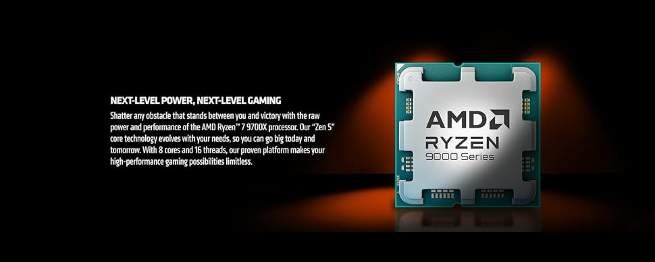 Take your computing experiences to a new level with the AMD Ryzen 7 9700X 3.8 GHz 8-Core AM5 Processor. Featuring 8 cores and 16 threads with 32MB of L3 Cache, this desktop processor quickly loads and multitasks demanding applications. Designed for socket AM5 motherboards using the powerful Zen 5 4nm architecture, this processor offers exceptional performance. With a base clock speed of 3.8 GHz and a max boost clock speed of 5.5 GHz, the Ryzen 7 9700X delivers the power needed to smoothly handle tasks ranging from content creation to immersive gaming experiences. You can boost performance further by overclocking this unlocked processor. Other features include support for PCIe Gen 5 technology and 5600 MHz ECC DDR5 RAM with compatible motherboards. This processor has a 65W TDP (Thermal Design Power) and does not include a cooling solution. Integrated Radeon Graphics delivers rich visuals. Precision Boost 2 AMD Ryzen processors monitor the system's energy consumption, temperatures, and other factors to automatically raise clock speeds, allowing applications to perform faster. Precision Boost Overdrive Precision Boost Overdrive technology takes advantage of your compatible motherboard's design to boost clock speeds higher and for longer periods of time. It also allows you overclock the processor at the touch of a button.